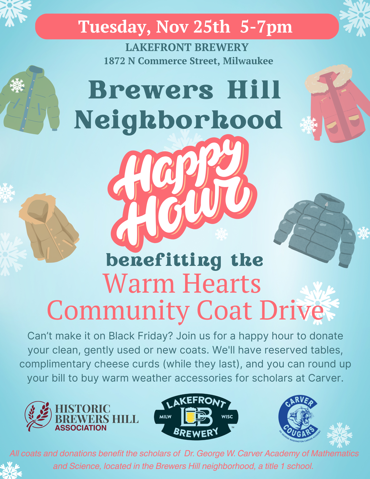 Joint happy hour with Carver Academy, in celebration of Black Friday's Coat Drive.